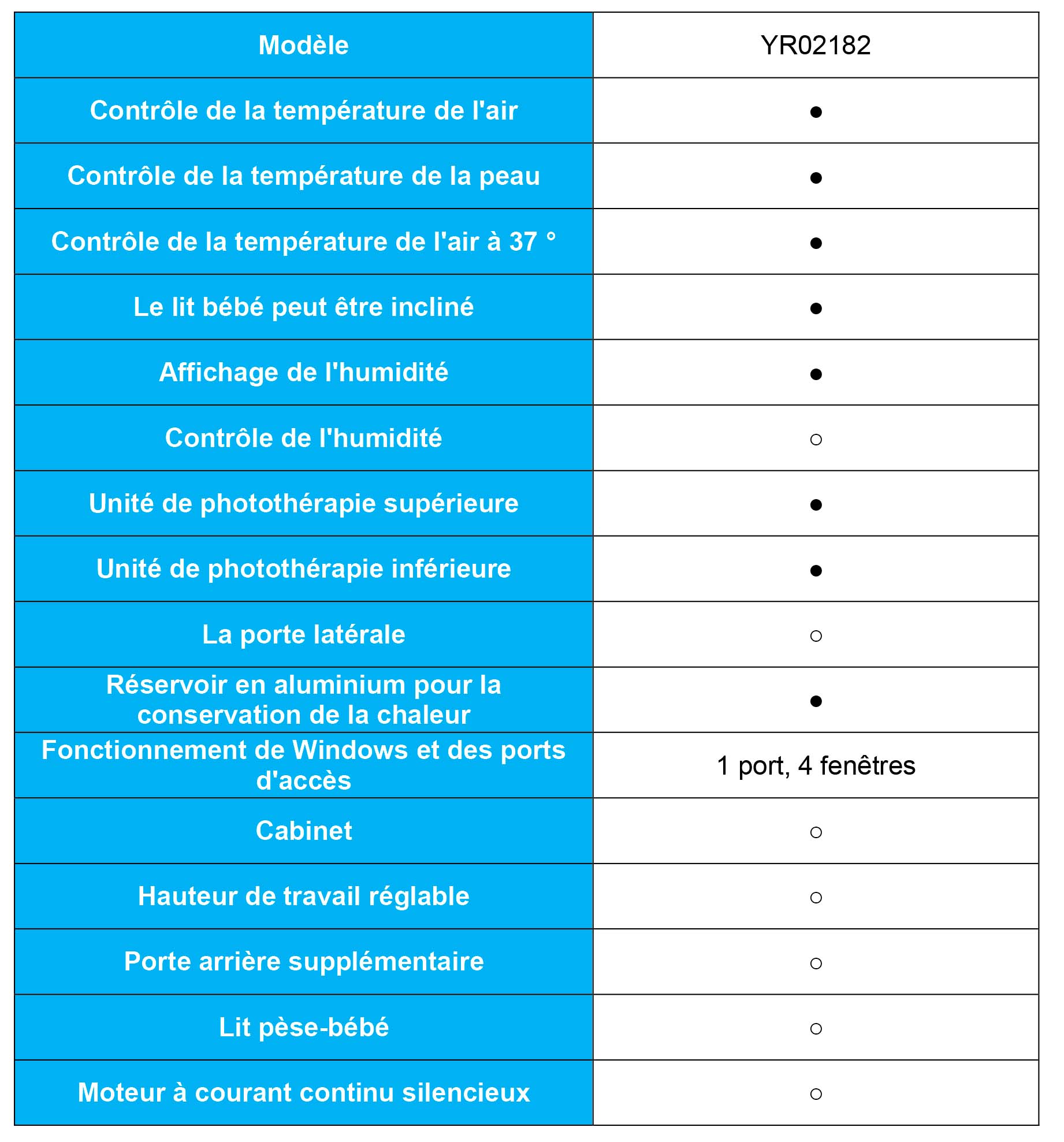 Table élévatrice | oui | |